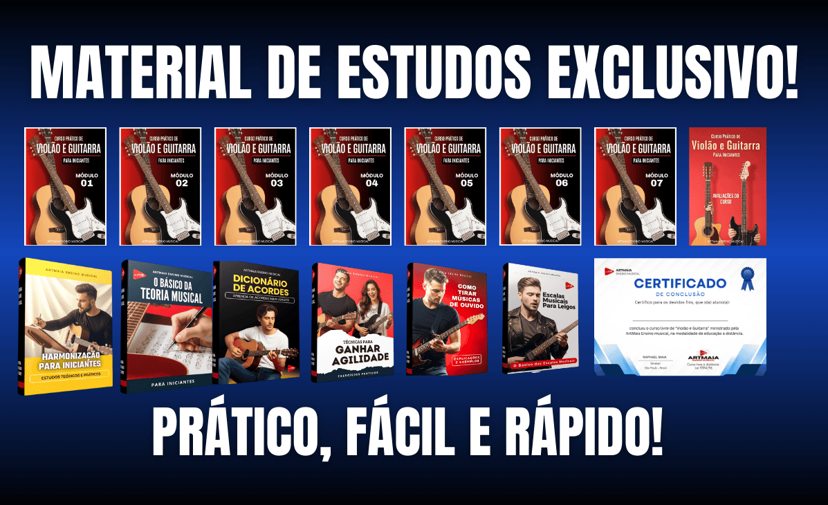 Você não precisa ter nenhum conhecimento musical para aprender com as lições que são explicadas passo a passo em 7 E-books, com aulas práticas e avaliações, para desenvolver todo seu potencial. E para turbinar ainda mais o seu aprendizado, você irá receber 6 bônus exclusivos e o certificado de conclusão do curso!